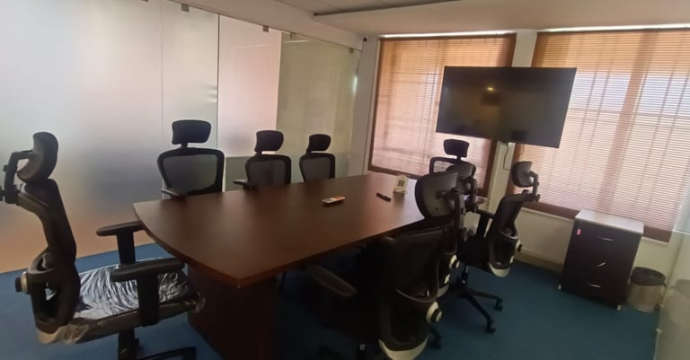 A conference room is a dedicated space equipped for meetings, presentations, and collaborative discussions in a professional setting.